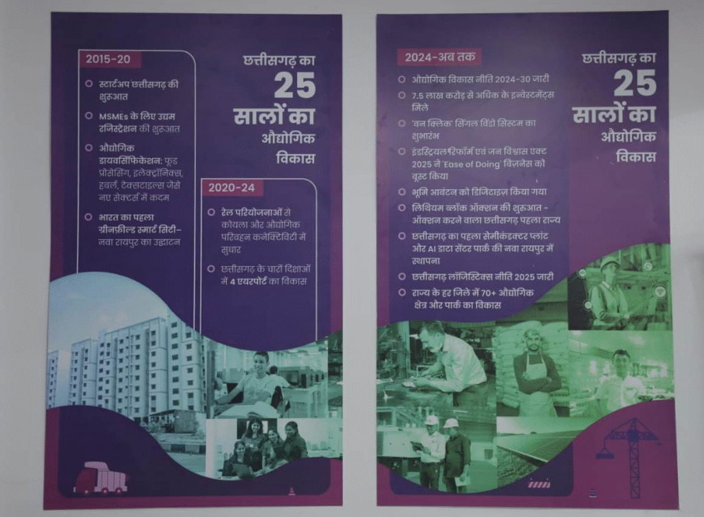 छत्तीसगढ़ का 25 सालों का औद्योगिक विकास की थीम पर सजी यह प्रदर्शनी मुख्यमंत्री विष्णुदेव साय के नेतृत्व में छत्तीसगढ़ की आत्मनिर्भर औद्योगिक दिशा को दर्शा रही है।