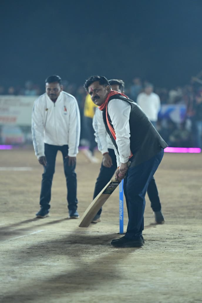 उपमुख्यमंत्री श्री विजय शर्मा ने फाइनल मुकाबले से पूर्व विधिवत पूजा-अर्चना कर मैच का शुभारंभ किया। उन्होंने दोनों टीमों के खिलाड़ियों से परिचय प्राप्त कर खिलाड़ियों का उत्साहवर्धन किया और खेल भावना के साथ खेलने का संदेश दिया। मैच के दौरान उपमुख्यमंत्री श्री शर्मा ने भी क्रिकेट में हांथ आजमाया और नगर पालिका अध्यक्ष एवं जिला पंचायत उपाध्यक्ष की गेंदों पर आकर्षक लंबे शॉट लगाया, जिससे मैदान में मौजूद खिलाड़ियों और दर्शकों का उत्साह और बढ़ गया। इस अवसर पर उपमुख्यमंत्री श्री विजय शर्मा ने ग्राम बरेंडा में मिनी स्टेडियम निर्माण की घोषणा भी की।
