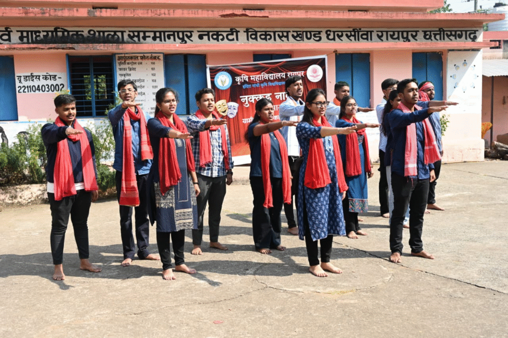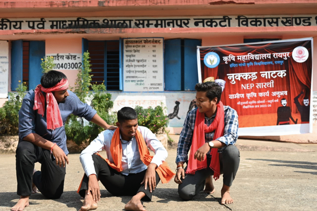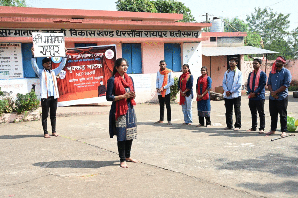 joharcg.com कृषि महाविद्यालय, इंदिरा गांधी कृषि विश्वविद्यालय, रायपुर के बी.एससी.(कृषि) चतुर्थ वर्ष के छात्रों ने सरकारी मिडिल स्कूल, नकटी गाँव, धर्मपुरा, रायपुर में जैविक एवं प्राकृतिक खेती और राष्ट्रीय शिक्षा नीति के महत्व पर आधारित एक नुक्कड़ नाटक प्रस्तुत किया। इस कार्यक्रम का उद्देश्य छात्रों को जैविक खेती के महत्व और राष्ट्रीय शिक्षा नीति के उद्देश्यों के बारे में जागरूक करना था।