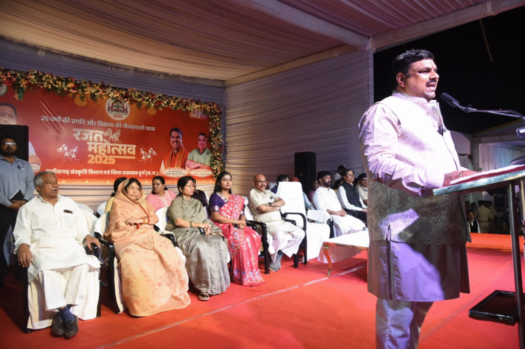 joharcg.com स्कूल शिक्षा मंत्री श्री गजेन्द्र यादव ने संविधान सभा सदस्य दुर्ग जिले के दाऊ घनश्याम गुप्ता का उल्लेख करते हुए कहा कि दुर्ग जिला ऐतिहासिक, सांस्कृतिक और गौरवशाली परंपरा वाला क्षेत्र रहा है, जिसने खेल, कला और संस्कृति के क्षेत्र में सदैव अग्रणी भूमिका निभाई है। उन्होंने कहा कि छत्तीसगढ़ बहुत ही सुघ्घर, बढ़िया, सुव्यवस्थित राज्य है। छत्तीसगढ़ राज्य स्थापना दिवस के अवसर पर गंज मंडी परिसर दुर्ग में जिला स्तर पर राज्योत्सव 2025 का भव्य आयोजन का उद्घाटन करते हुए  उक्त विचार व्यक्त किए।