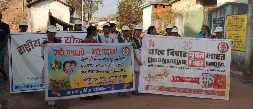 joharcg.com छत्तीसगढ़ को बाल विवाह मुक्त राज्य बनाने के लक्ष्य के साथ महिला एवं बाल विकास विभाग द्वारा “बाल विवाह मुक्त भारत” एवं “बाल विवाह मुक्त छत्तीसगढ़” अभियान के अंतर्गत प्रदेशभर में व्यापक जन-जागरूकता कार्यक्रम संचालित किए जा रहे हैं। मिशन वात्सल्य के अंतर्गत जिला बाल संरक्षण इकाइयों के माध्यम से विद्यालयों, महाविद्यालयों, ग्राम पंचायतों एवं नगरीय निकायों में लगातार जागरूकता गतिविधियां आयोजित की जा रही हैं।