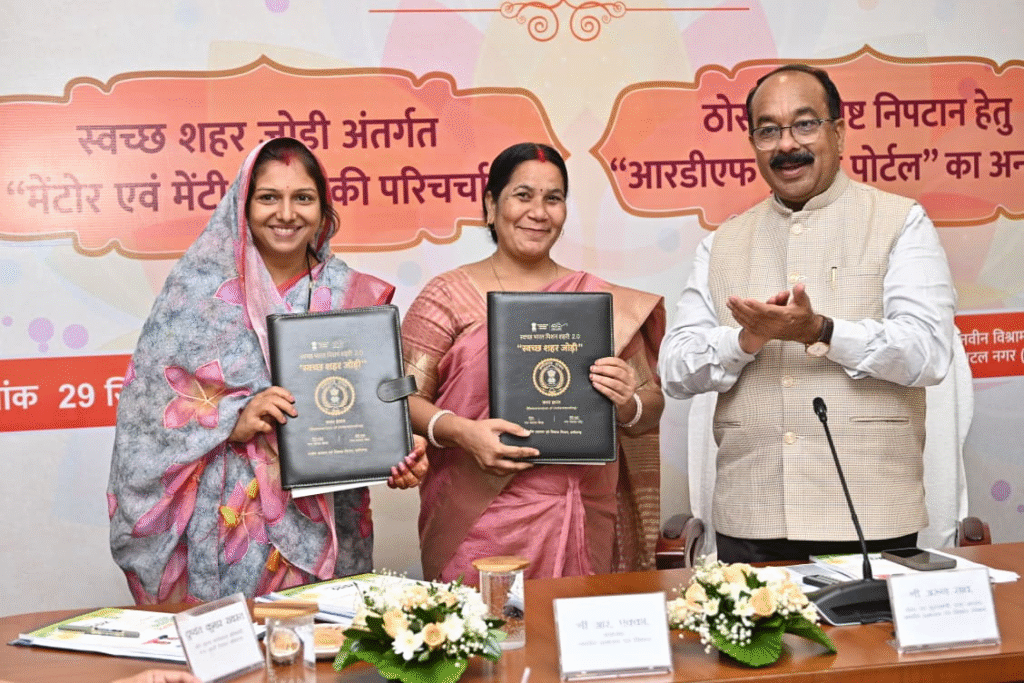 उप मुख्यमंत्री श्री साव ने नवा रायपुर स्थित विश्राम भवन में आयोजित कार्यक्रम में आरडीएफ ट्रैकिंग पोर्टल, व्हाट्स-अप चैटबॉट तथा स्वच्छता लीग के हिन्दी टूलकिट को भी लॉन्च किया। भारत सरकार के नवीन अभियान “स्वच्छ शहर जोड़ी” के तहत स्वच्छ भारत मिशन (शहरी) के अंतर्गत स्वच्छ सर्वेक्षण में उत्कृष्ट प्रदर्शन करने वाले शहर अपने राज्य के उन शहरों को जो स्वच्छ सर्वेक्षण में अपेक्षा के अनुरूप प्रदर्शन नहीं कर पाये हैं, उन्हें अपने अनुभवों का लाभ प्रदान कर स्वच्छता में बेहतर प्रदर्शन के लिए प्रोत्साहित और सहयोग करेंगे। इसके लिए आज मेन्टोर (Mentor) शहर एवं मेन्टी शहरों द्वारा एमओयू पर हस्ताक्षर करने के साथ ही आगे के रोडमैप पर विस्तृत चर्चा की गई।